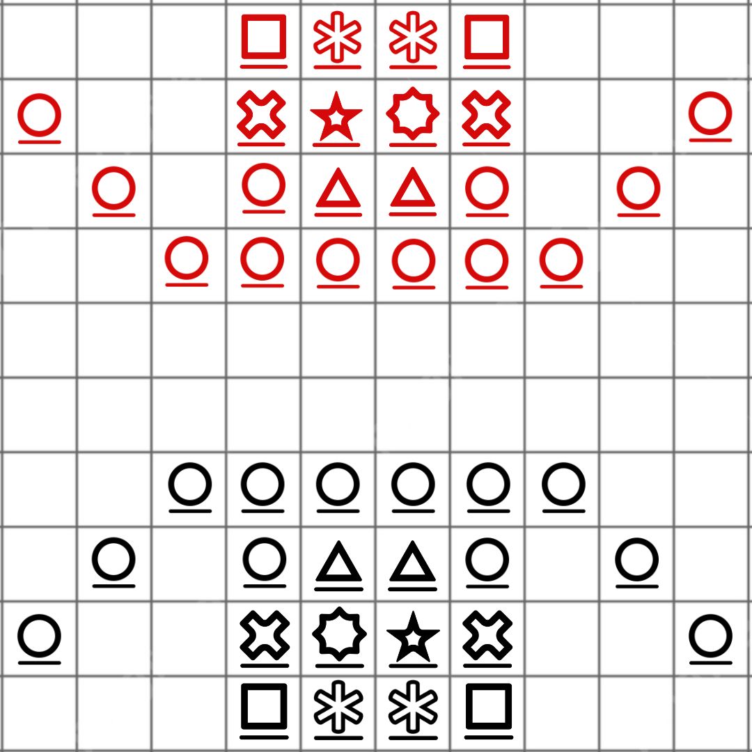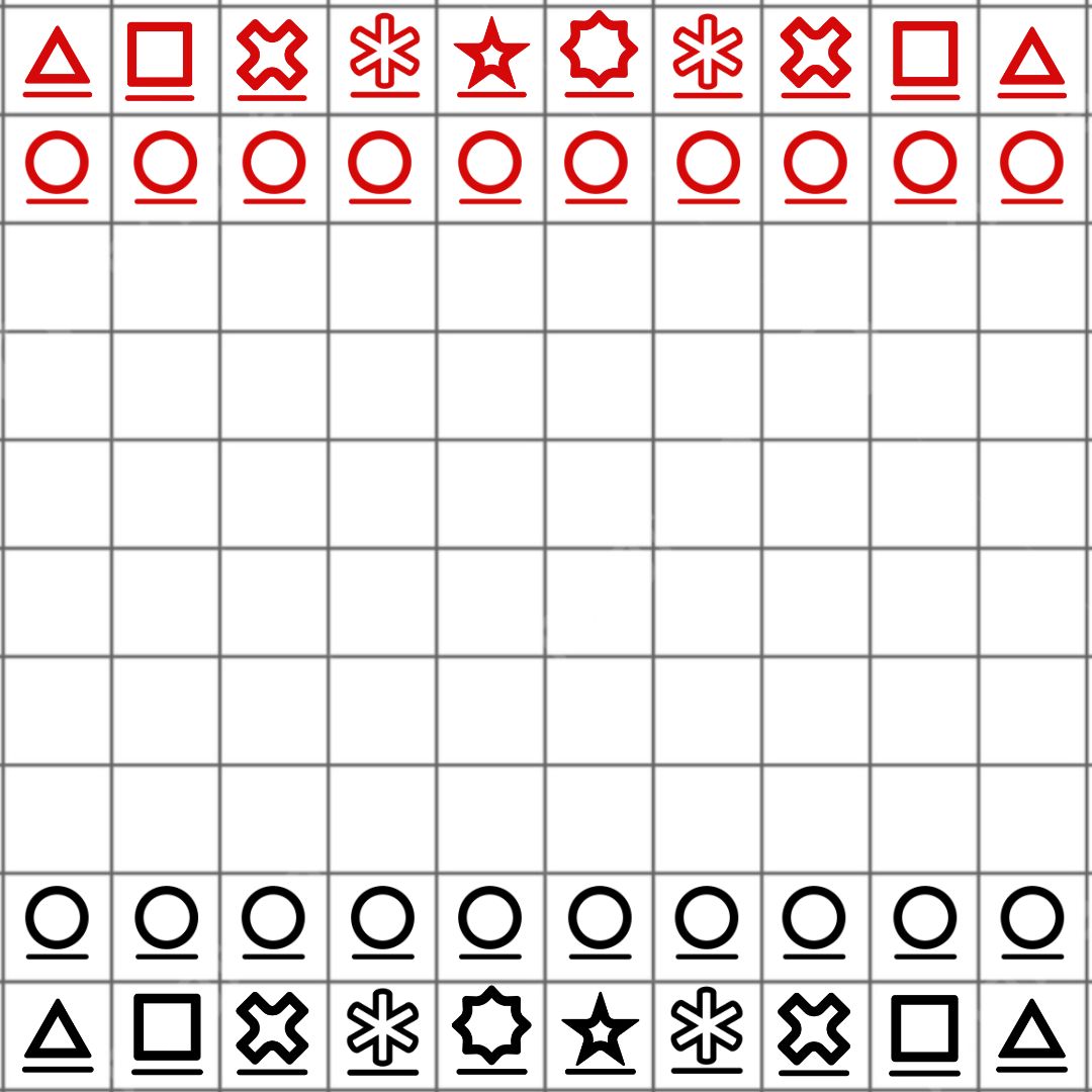 Игроки получают одинаковый набор игровых фигур, расставляют их согласно правилам игры по игровой поверхности, которая разделена поровну между игроками. Игроки получают одинаковое количество времени на обдумывание ходов и равное количество ходов. Ходы совершают по очереди, очерёдность определяют путём жребия.