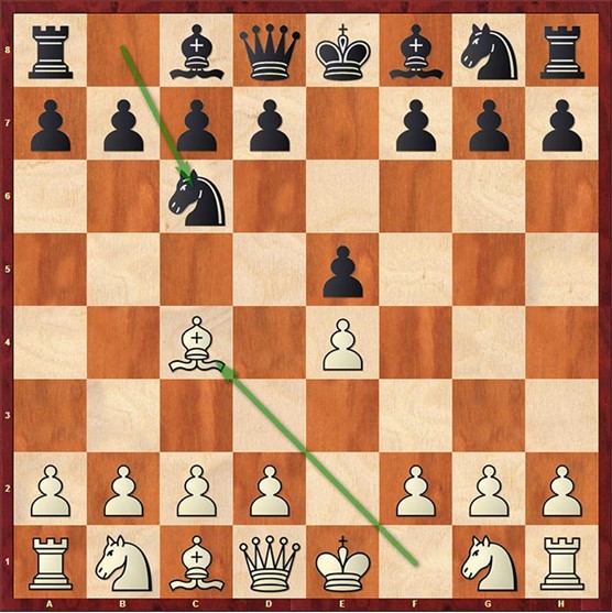 2 ход. Белые ходят слоном на c4, а черные допустим ходят конем на c6. Все пока что идет нормально.